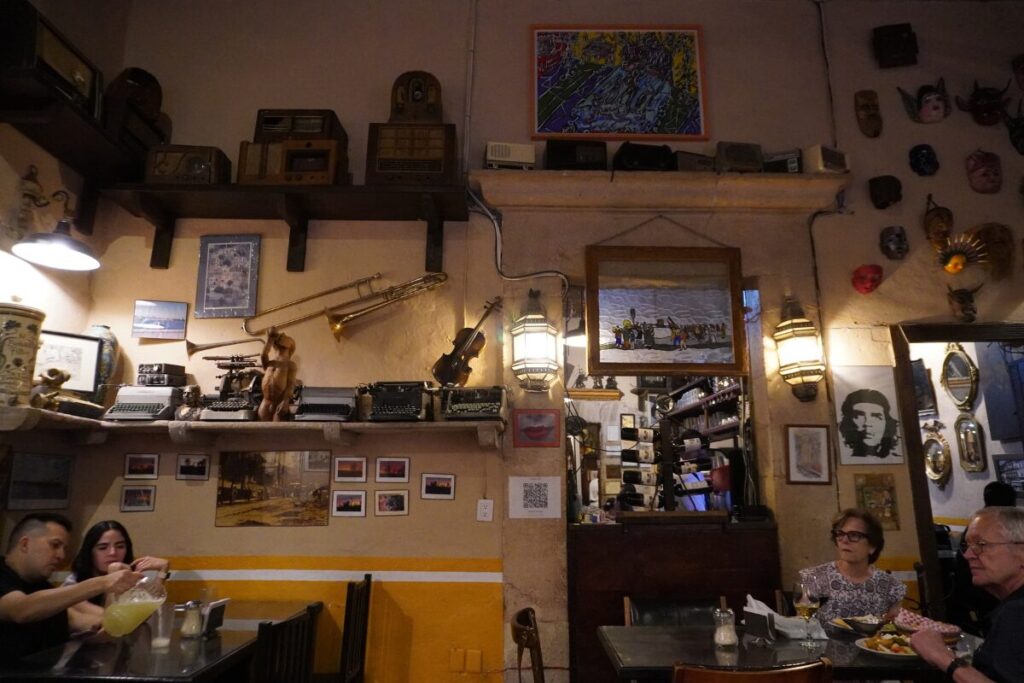 店内は、一歩足を踏み入れると外の喧騒を忘れるほど個性的。アンティークな調度品やタイプライター、壁一面のマスク(仮面)が並び、まるでおもちゃ箱をひっくり返したようなワクワク感があります。