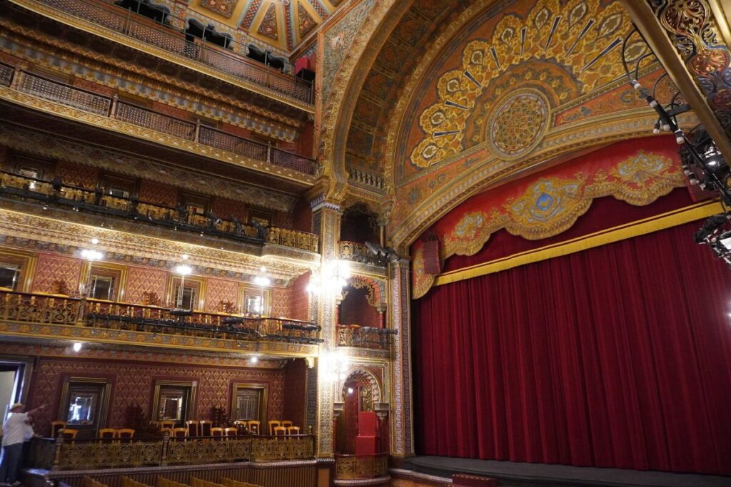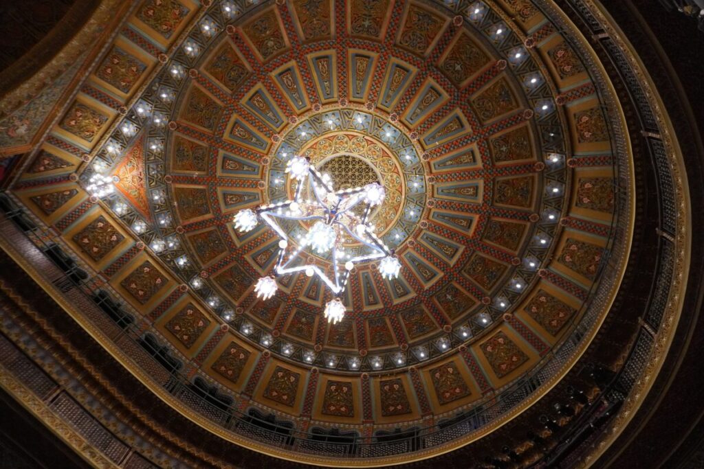- 星型のシャンデリア: 天井中央で輝く星型の照明は劇場のシンボル。
