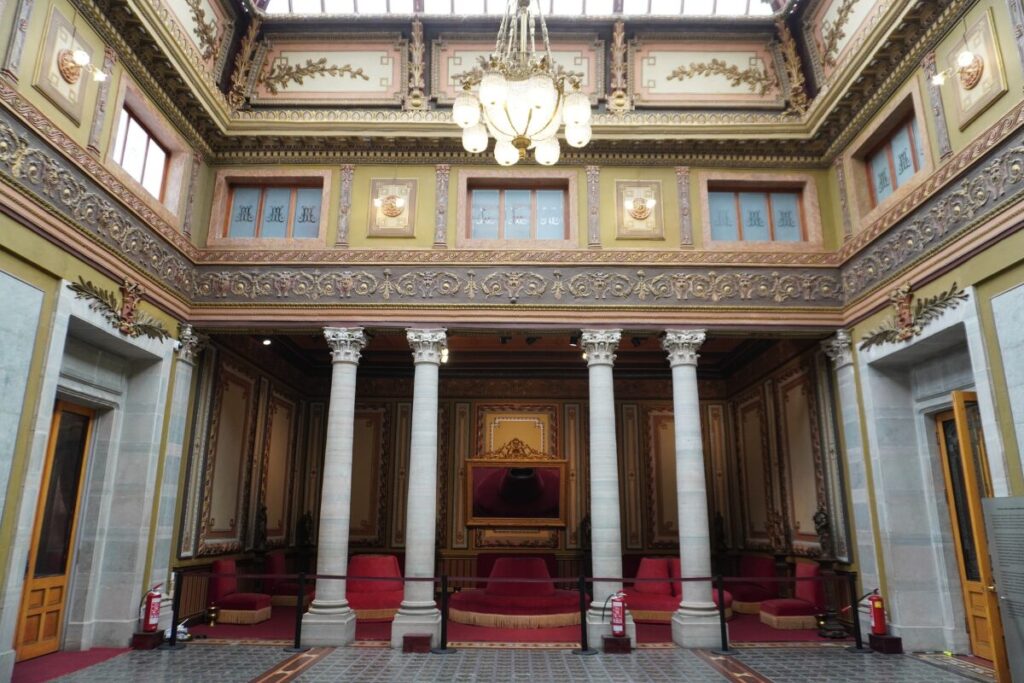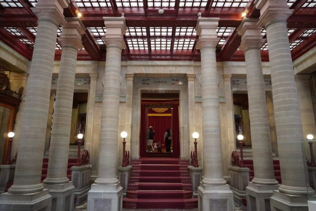 フアレス劇場は公演がない日中、観光客向けに一般公開されています。特に注目すべきは、当時の貴族たちが幕間に過ごした「サロン(休憩室)」です。