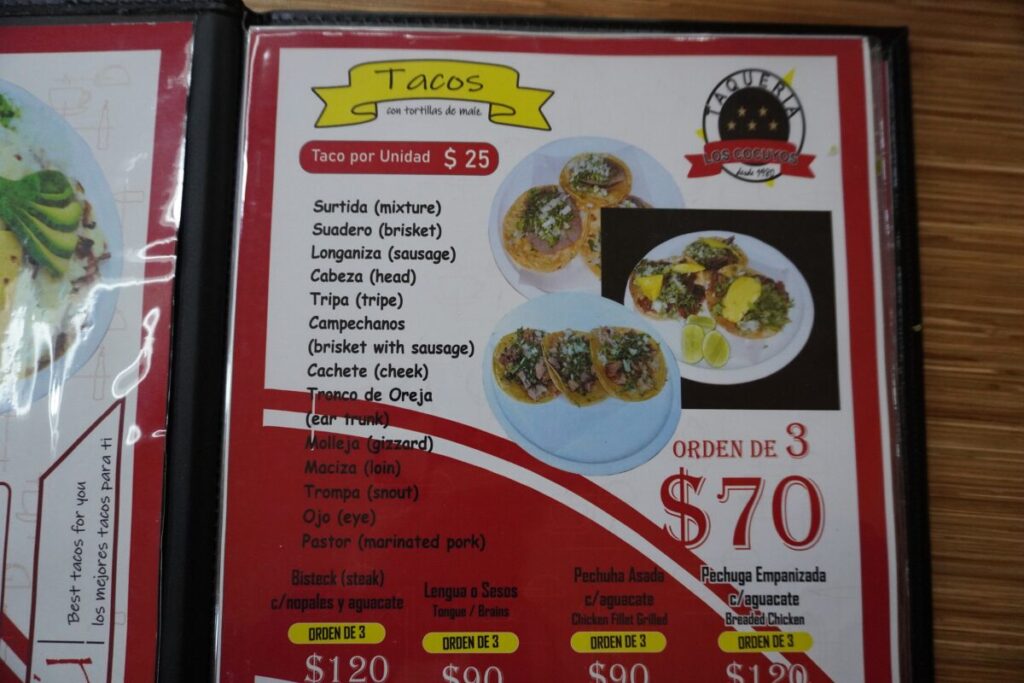 メニュー:伝統の肉タコスいろいろ!