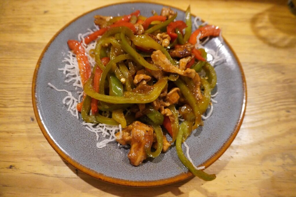 メインの牛肉とピーマンの炒め物。彩り豊かでボリュームもしっかり。