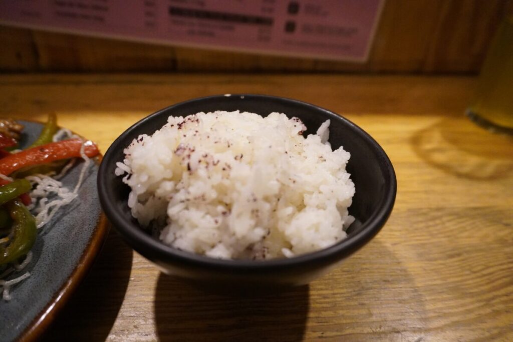 ゆかりがかけられた、ふっくら炊かれたごはん。