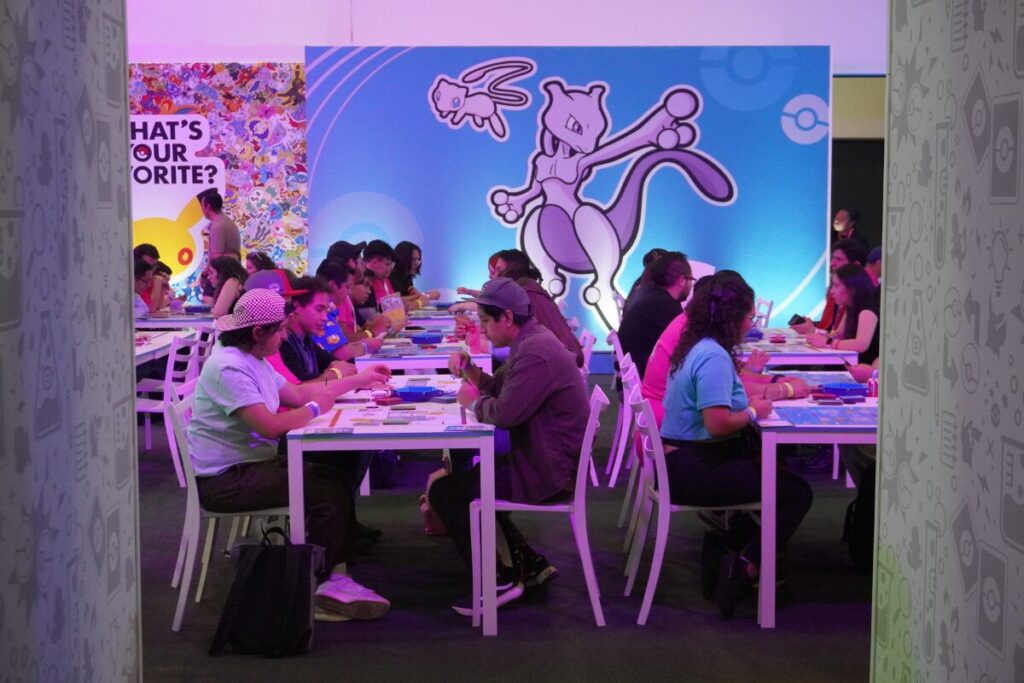 非常に広い対戦エリアが確保されており、真剣勝負を繰り広げるプレイヤーで溢れていました。対戦待ちの列ができるほどの人気ぶりで、メキシコにおけるポケカコミュニティの層の厚さを実感しました。