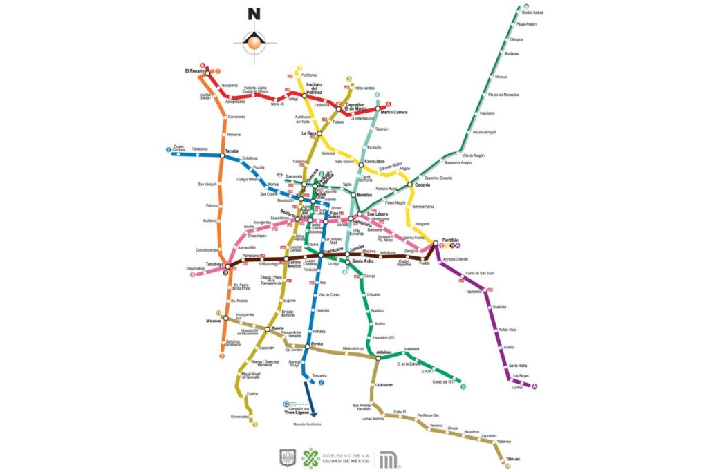 - 1・2・3号線: ソカロ(歴史地区)やベジャス・アルテス宮殿などを通る、観光には便利なライン。路線図では、ピンク、青、黄色で表示されています。