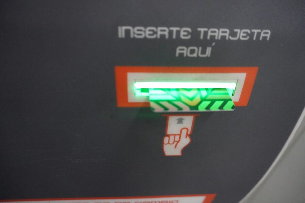 - 現金を投入(※お釣りが出ないことが多いので、20ペソや50ペソ札、小銭を準備してください)。