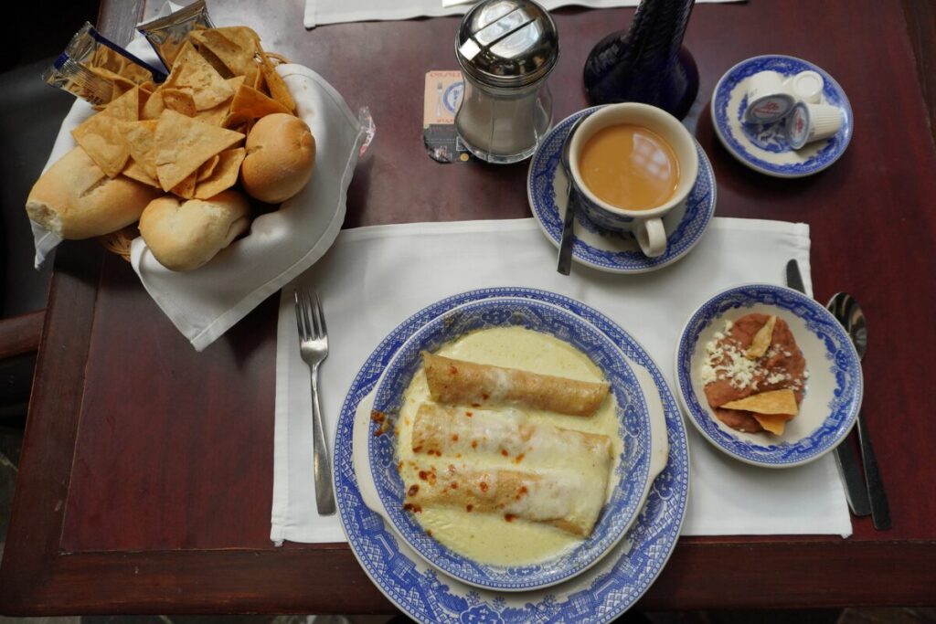 コーヒー(Americano)を頼むと、店員さんがポットを持ってテーブルを回ってくれます。 メキシコでは珍しく**「おかわり自由」**なのが嬉しいポイント。 「もう一杯どう?」と笑顔で注いでくれるので、歴史ある空間でついつい長居しちゃいます。