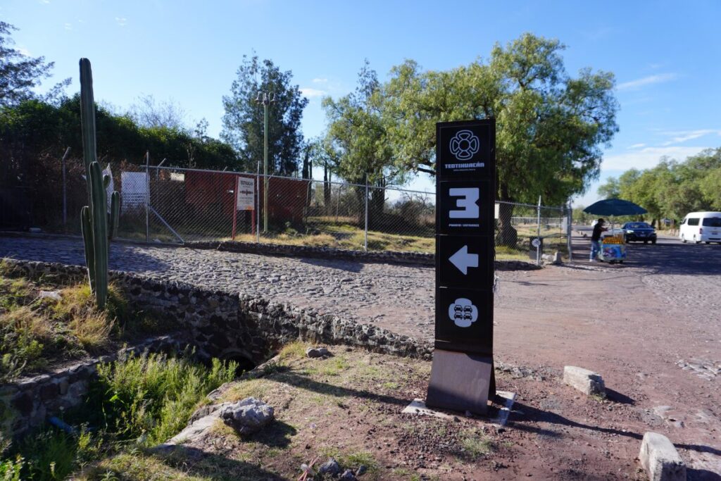 プエルタ3の入り口。月のピラミッドから観光を始めるにはここから入ると良い。プエルタ4から直進すると徒歩5~10分ほどで見えてくる。