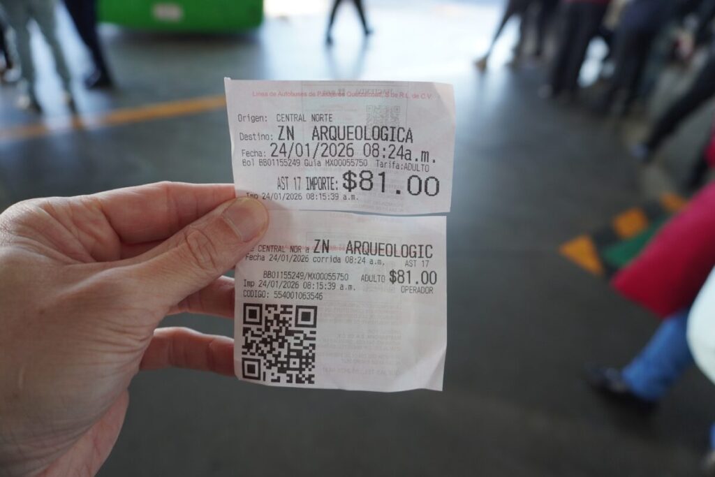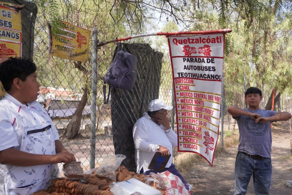 • 帰りのバスは プエルタ2(太陽のピラミッド前) から乗るのが最も確実です。プエルタ4付近でも乗れることがありますが、プエルタ2ですでに満席の場合、止まらずに通過されてしまうリスクがあります。プエルタ1周辺には、高速バスが常時待機・停車するバス停はありません