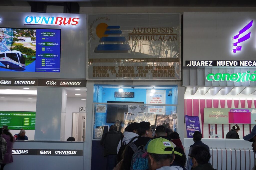 この看板が目印。テオティワカンまでの高速バスチケットを購入できる。