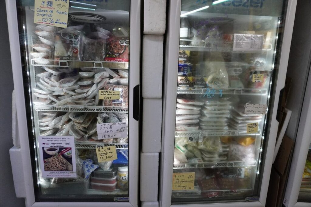 店内の冷凍庫には、納豆、餃子、さらには「ししゃも」や「チャーシュー」といった調理済み食品まで揃っています。中には**「半額セール」**になっている掘り出し物があることも!