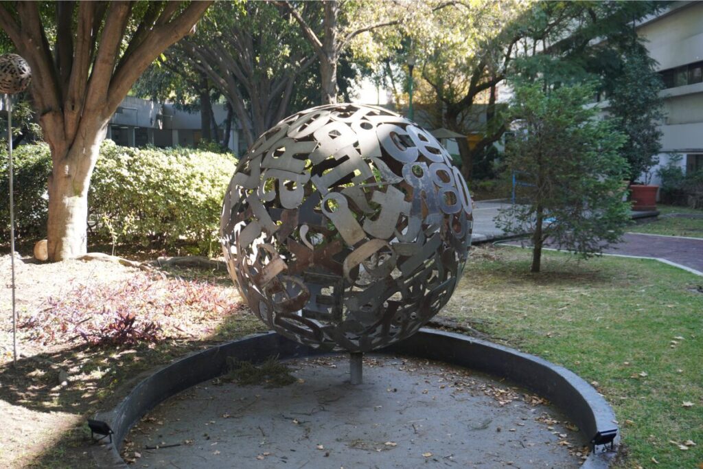 象徴的なモニュメントは、世界中から集まる学生が、バラバラの文字(言語)を学び、一つの形(コミュニケーションや理解)を作り上げていく様子、あるいはスペイン語という「言葉」を通じて世界と繋がることを表現している。