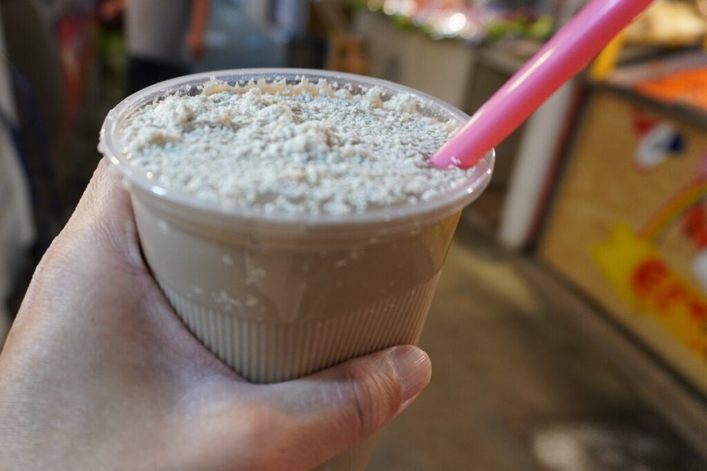実際に飲んでみると驚くほどおいしい。市場を歩きながら飲んでみよう。