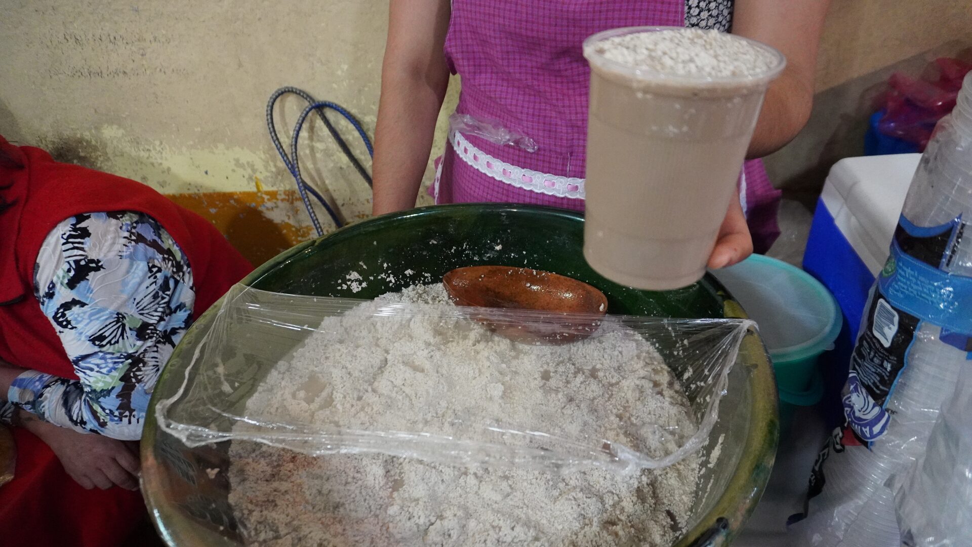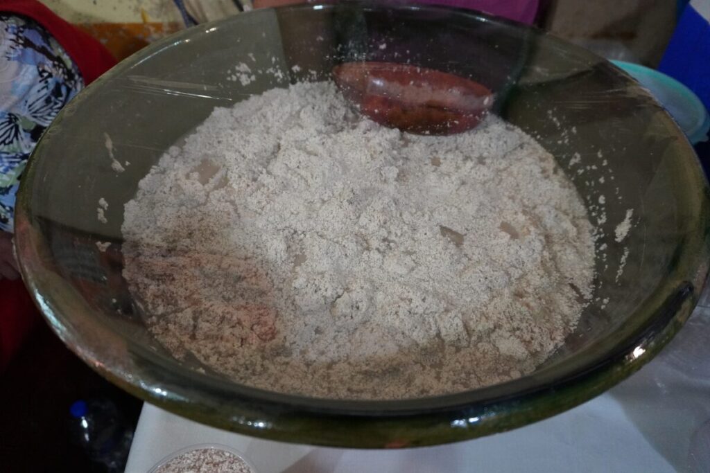テハテの入った大きなボウル。ここからテハテを木のヘラを使ってすくい上げる。