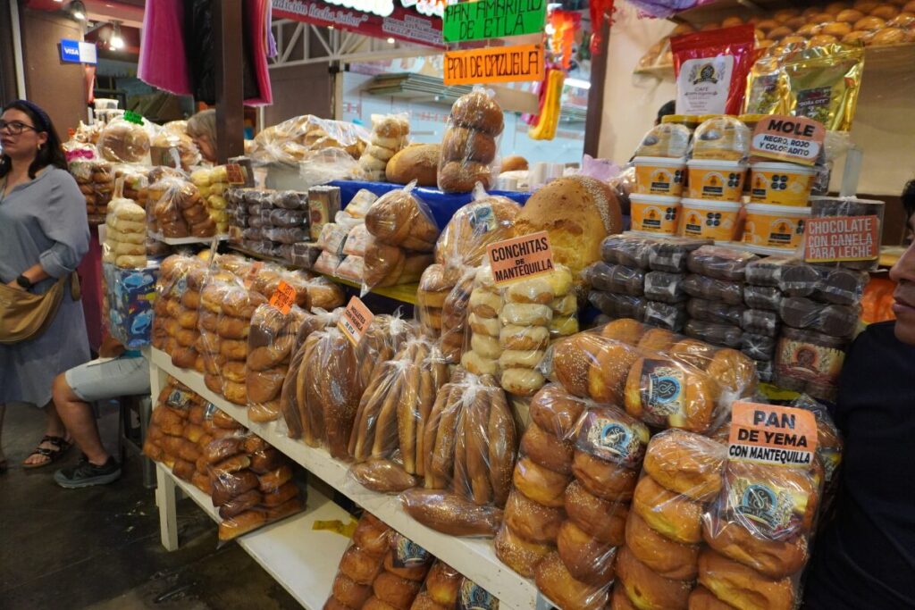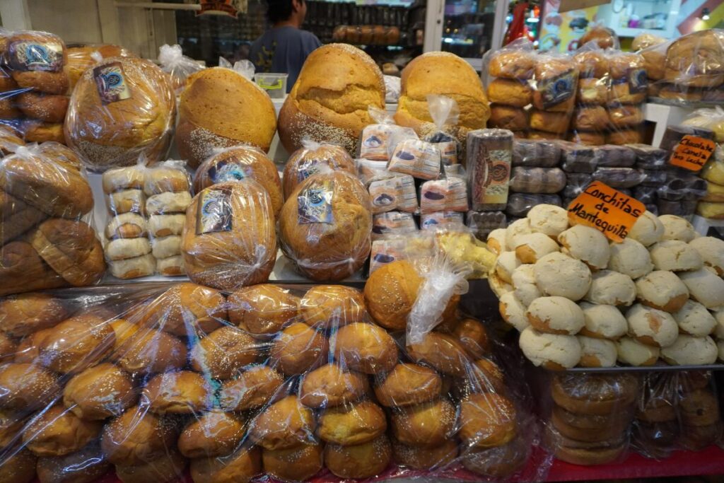 肉の香ばしさと対照的に、市場の別のエリアでは甘く優しい香りが漂っています。オアハカは独自のパン文化が根付いており、その種類の多さに驚かされるはずです。