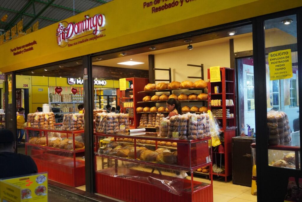 清潔感のある大型のパン専門店「Santo Domingo」。地元の人々が次々と買い求めていきます。