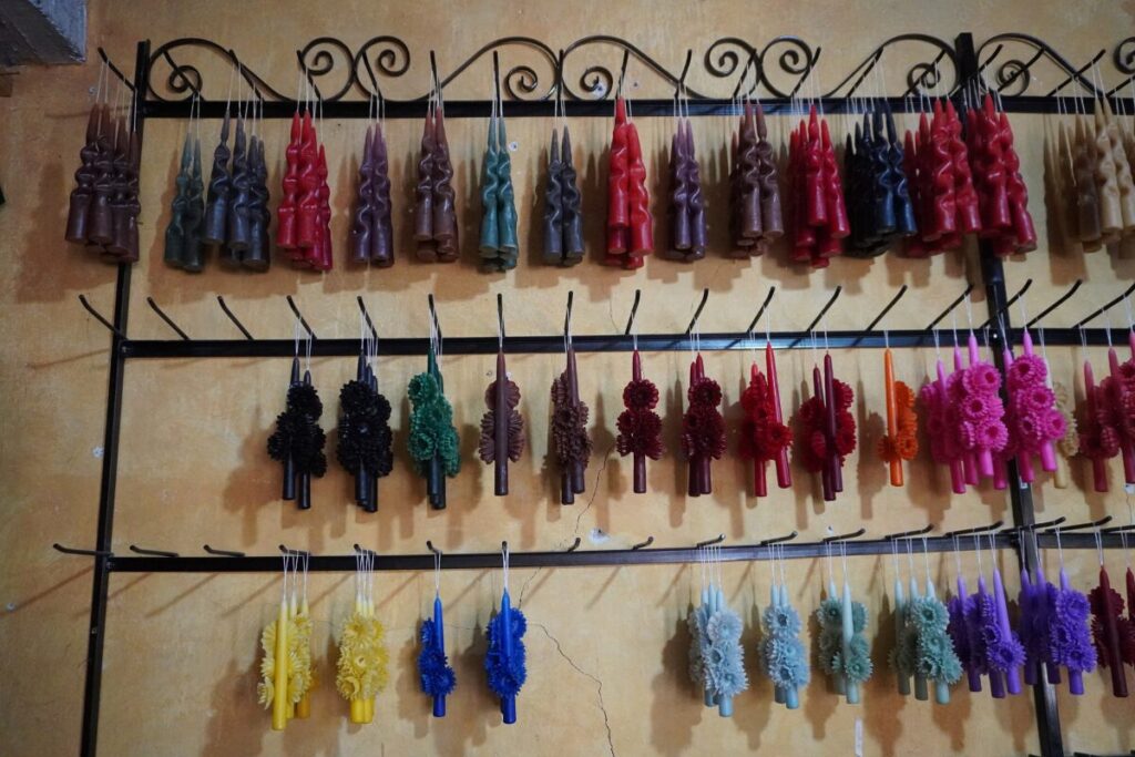 オアハカにおいてキャンドルは、単なる装飾品ではありません。教会での祈りや祭礼、日常生活において欠かせない存在であり、その光は**「信仰」や「魂とのつながり」**を象徴しています。